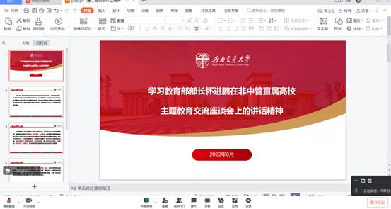 最后,冯轩羽同志领学“学习教育部部长怀进鹏在非中管直属高校主题教育交流座谈会上的讲话精神”,指出应对照“学思想、强党性、重实践、建新功”的总要求,做“有理想、敢担当、能吃苦、肯奋斗”的新时代好青年。