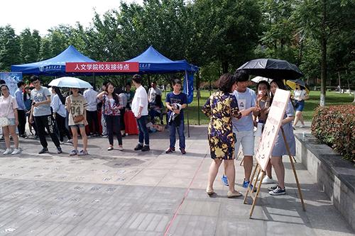 365英国上市网站官网的摊点设置在图书馆北侧,因是最后一个游戏,所以以学校现用名“西南交通大学”命名。365英国上市网站官网设置的游戏叫做“成语连珠”,两人一组,两组同时进行比赛。一名队员在装满塑料小球的池子内寻找写有指定成语的小球,另一名成员用筷子夹起小球,穿过贴有《双甲子赋》的跑道,粘在终点处的画板上。两组中先完成者获胜。