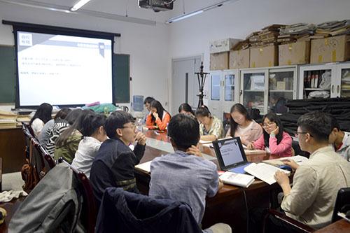 在读书交流活动开始前,2015级的钱坤同学和在座的书会成员们分享了最近一周有趣的时事热点。其中包括:“蔡英文就职,网友称其答辩不及格”“斯里兰卡迎来大量降水,举国上下水中嬉戏”“霍金之后,韩春雨晋升为新一代网红学霸”等。同学们各抒己见,畅所欲言。