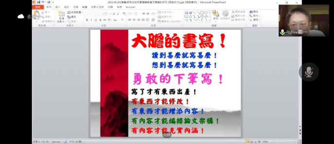 郑卜五教授主要就“研究生如何掌握学术论文撰写的技巧”开展本次讲座。郑教授提出研究生撰写学术论文主要存在三个方面的问题:心态问题、方法问题和技巧问题。郑教授特别强调“一般研究生都是惜字如金的”,原因在于书读得太少、没有方向、资料找得不够,顾虑重重,从而“不肯下手,不敢下手”,对此,郑教授鼓励同学们“大胆的书写”“勇敢的下笔写”,找好研究方向,详细收集研究论题的资料,仔细研读文本资料,写出研究大纲和进度表,对论文的撰写做好详细规划。郑卜五教授还幽默地表示论文发表要“乱投”“乱发表”,用诙谐的方式给同学们勇气与信心,提出“独发神悟”,着重强调了问题意识的敏锐度。