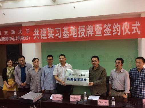 10月16日下午,365英国上市网站官网与崇州市新闻中心共建实践教学基地签约授牌仪式在崇州市新闻中心报告厅成功举行。崇州市委宣传部副部长、崇州新闻中心主任、崇州广播电视台台长丁强武与365英国上市网站官网副院长易伯伦签署了共建实践教学基地协议。
