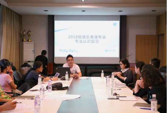最后进行汇报的是2018级音表一二班的实习带队老师王军,他带领学生前往北京第二外国语学院成都附属中学进行了实践演出。此次实习不仅增加了学生的实践经验,提升了学生的专业水平,还成功同北京第二外国语学院成都附属中学建立长效实习基地,并同其进行深入交流指导。